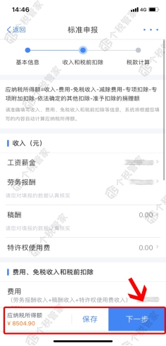 第五步:查看“收入和税前扣除”信息,确认无误后点击“下一步”