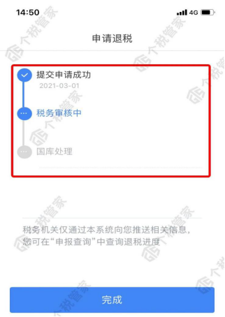 第八步:提交成功后,待税务审核和国库处理后,退款即可到账。