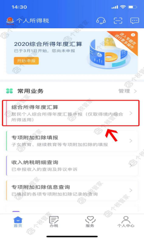 第一步:打开并登陆“个人所得税”APP,点击“综合所得年度汇算”