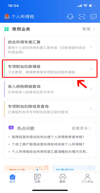 第一步:点击首页“专项附加扣除填报”