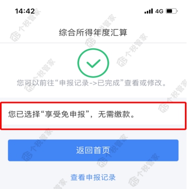 第一步:税款计算后,查看应补税款,点击“享受免申报”