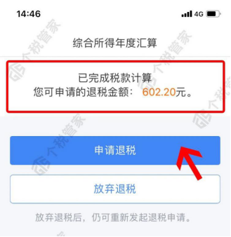 第六步:完成税款计算后,可查看退税金额,点击“申请退税”