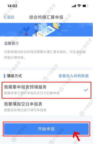 第三步:点击“我需要申报表预填服务”可快速进行申报。
