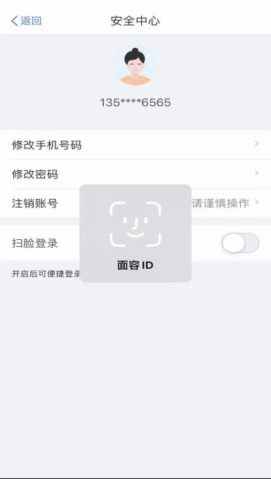 3.扫脸登录:若您的手机支持扫脸登录,则登录后可在【个人中心】—【安全中心】开启扫脸登录的开关,首次开启需要验证人脸信息。