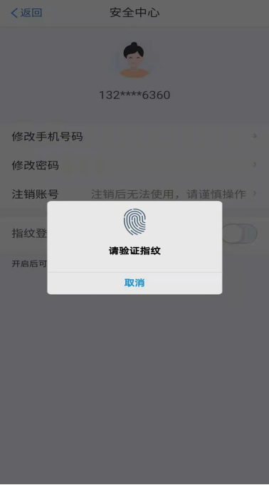 2.指纹登录:若您的手机支持指纹登录,则登录后可在【个人中心】—【安全中心】开启指纹登录的开关,首次开启需要验证指纹。